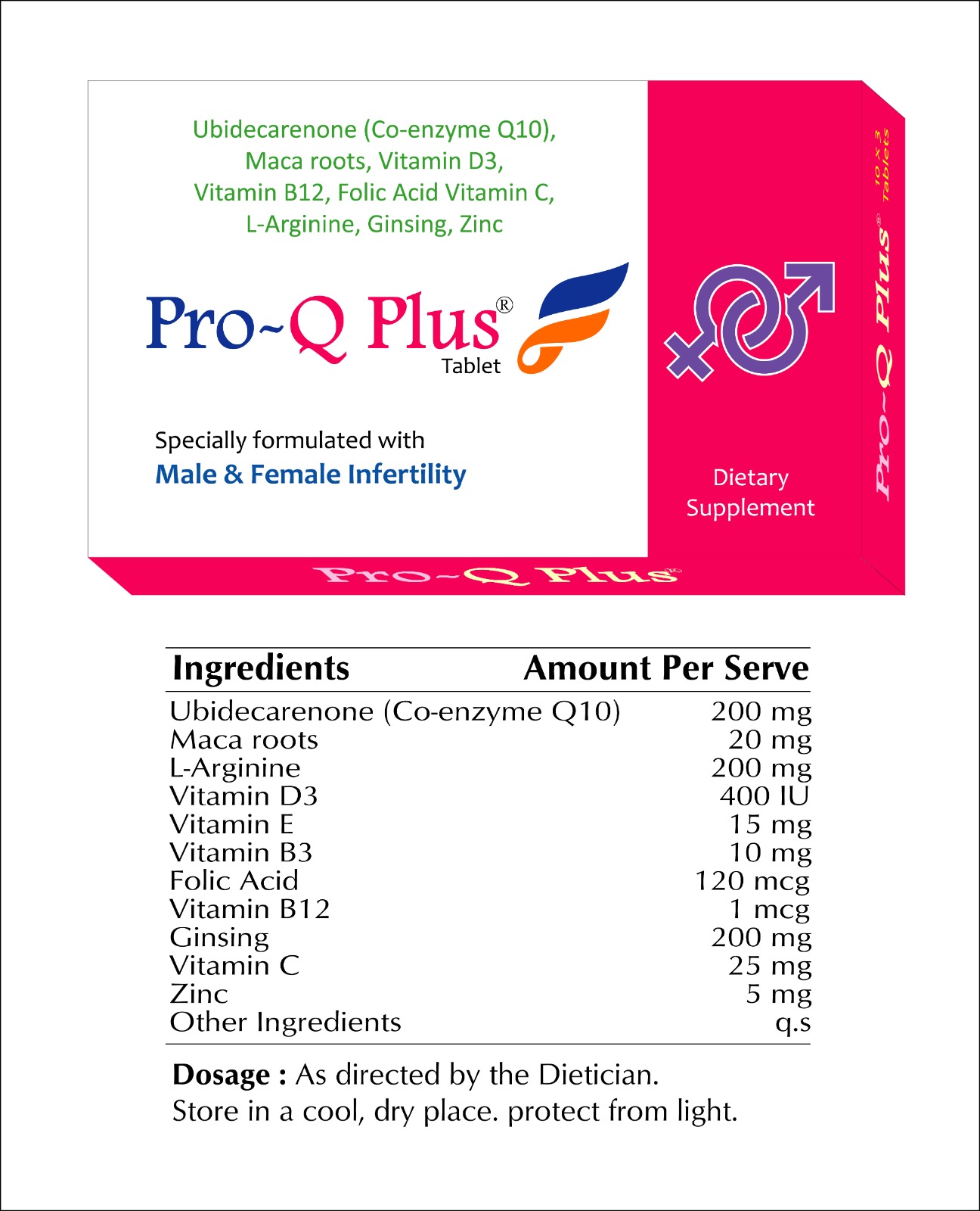 Ubidecarenone (Co-enzyme Q10), Maca roots, Vitamin D3, Vitamin B12, Folic Acid Vitamin C, L-Arginine, Ginseng, Zinc